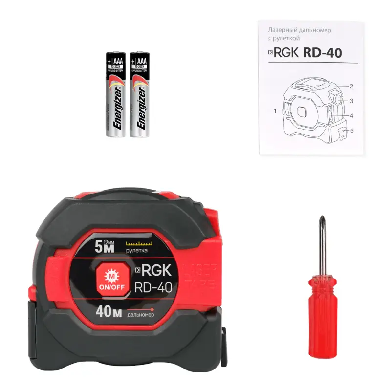 - Лазерный дальномер с рулеткой RGK RD-40 - 1 шт.
